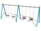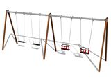 The support structure of the swing is made from structural steel, which is zinc coated or duplex powder coated with coat curing according to RAL to prevent corrosion and is fixed in a concrete bed. The Baby seat is made of rubber and is reinforced with an aluminum insert. The Normal seat is made of aluminum, covered with a soft and comfortable rubber. The chains are stainless steel, resulting in a very prolonged service life of the product. All fastening material is galvanized or stainless steel.