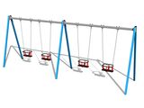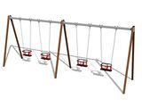 The support structure of the swing is made from structural steel, which is zinc coated or duplex powder coated with coat curing according to RAL to prevent corrosion and is fixed in a concrete bed. The Baby seat is made of rubber and is reinforced with an aluminum insert. The chains are stainless steel, resulting in a very prolonged service life of the product. All fastening material is galvanized or stainless steel.