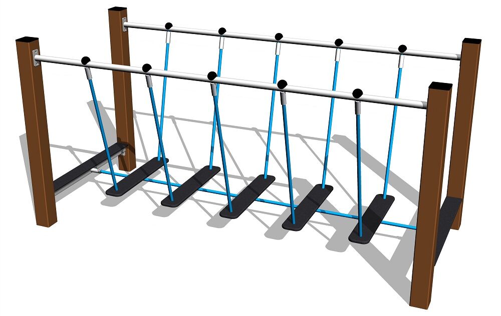 Rope bridge - metal (f.h. 1 m) - there is no need for a fall zone up to the height of 1 m, a grass surface is enough. We offer two color variants of the support structure - brown and silver. More information