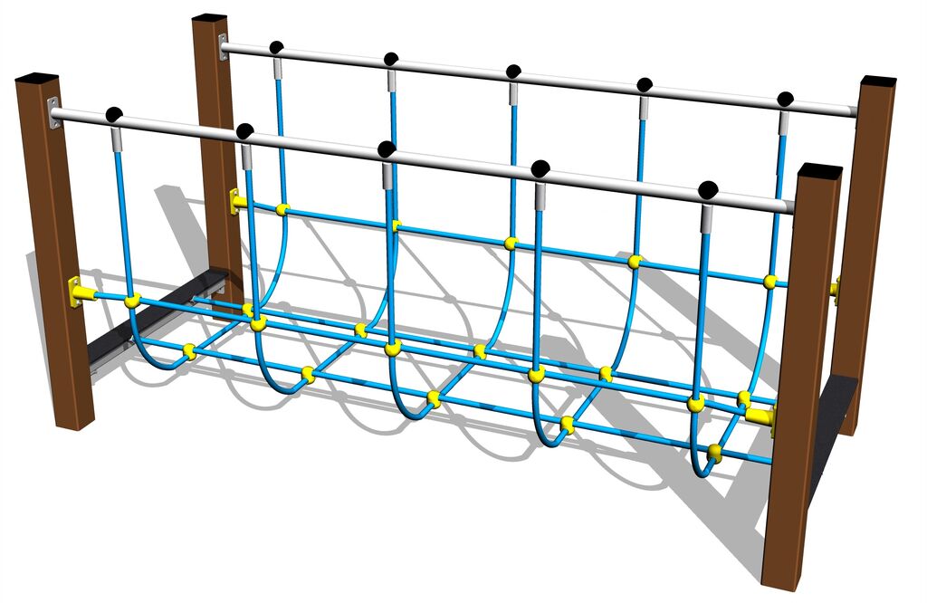 Rope bridge - metal (f.h. 1 m) - there is no need for a fall zone up to the height of 1 m, a grass surface is enough. We offer two color variants of the support structure - brown and silver. More information