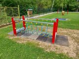 Rope bridge LL102K - metal (f.h. 1 m) - there is no need for a fall zone up to the height of 1 m, a grass surface is enough. We offer three color variants of the support structure - red, blue and brown. More information