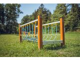Rope bridge LL102K - metal (f.h. 1 m) - there is no need for a fall zone up to the height of 1 m, a grass surface is enough. We offer three color variants of the support structure - red, blue and brown. More information