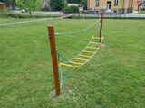 Rope net LP010K - there is no need for a fall zone up to the height of 1 m, a grass surface is enough. We offer three color variants of the support structure - red, blue and brown.
