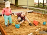 The sandpit is made from glued wooden supports. This solution ensures maximum protection against cracking, which is common for products made from solid wood. The wooden supports are impregnated and coated with a triple layer of lacquer, which meets the terms and conditions of the EN71/3 Standard (safe for children's toys). The structures are anchored into the ground in steel plates, which are protected against corrosion by hot-dip galvanizing and fixed in a concrete bed. The anchors are fastened to the play unit with bolts and their structure ensures that they are not in direct contact with the ground. All other metal units are zinc coated or duplex powder coated with coat curing according to RAL to prevent corrosion.