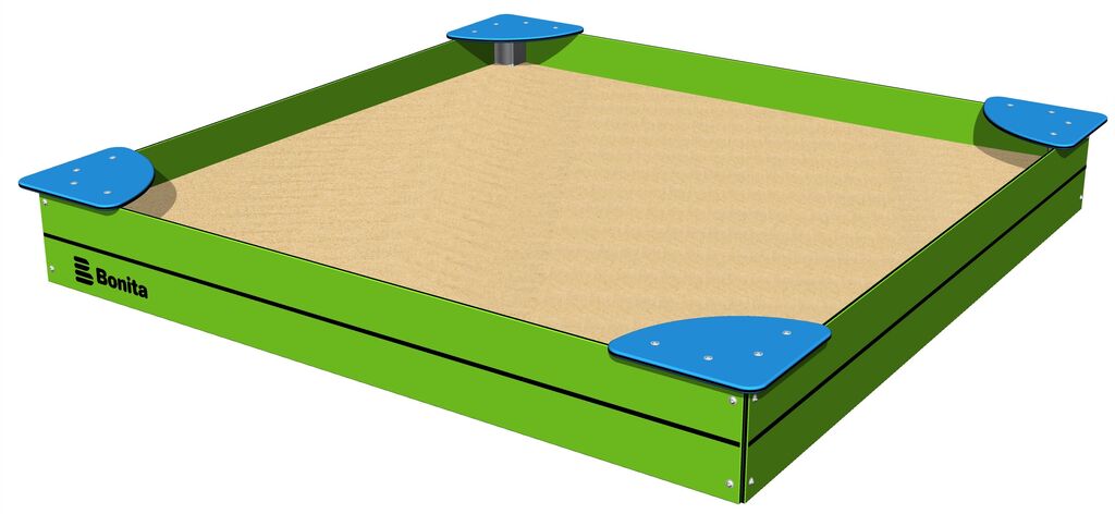 The sandbox is made from high quality HDPE plastic (high density coloured polyethylene, which is characterised by high colour stability, UV resistance but mainly safety as it doesn't break and therefore there is no danger of injury to children by sharp fragments).