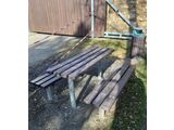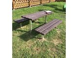 The seating set is made from recycled plastic. The posts of the bench are made from structural steel, protected against corrosion by hot-dip galvanizing, which significantly prolongs the life of the play unit. The structures are fixed in a concrete bed. All fastening material is galvanized or stainless steel.