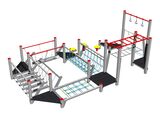 The support structure of the skill path is made of structural steel which is protected against corrosion by zinc coating, resulting in a very prolonged service life of the workout elements or duplex powder coated with coat curing according to RAL to prevent corrosion. These structures are embedded in a concrete base. All other metallic elements are also zinc coated or duplex powder coated with coat curing according to RAL to prevent corrosion.