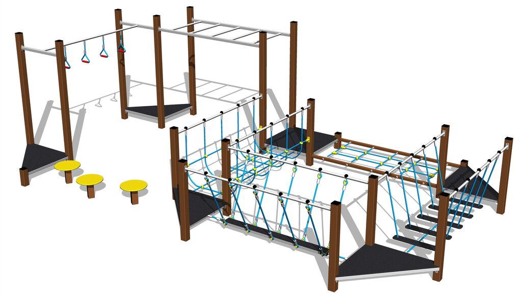 Skill path - there is no need for a fall zone up to the height of 1 m, a grass surface is enough. We offer two color variants of the support structure - brown and silver.