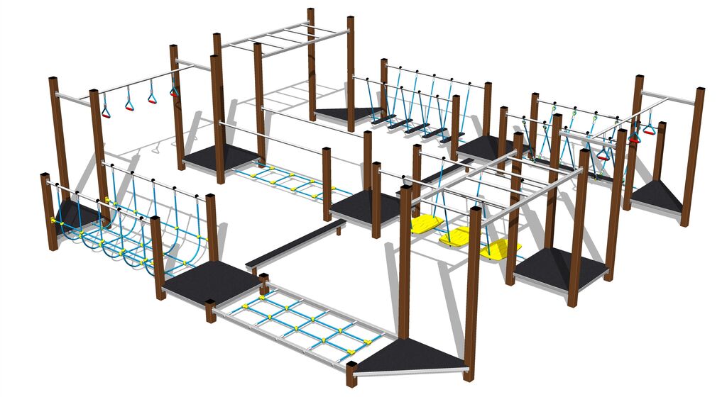 Skill path - there is no need for a fall zone up to the height of 1 m, a grass surface is enough. We offer two color variants of the support structure - brown and silver. More information