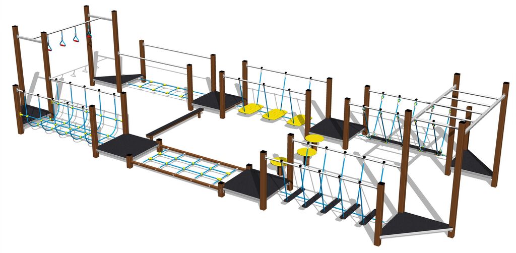 Skill path - there is no need for a fall zone up to the height of 1 m, a grass surface is enough. We offer two color variants of the support structure - brown and silver.