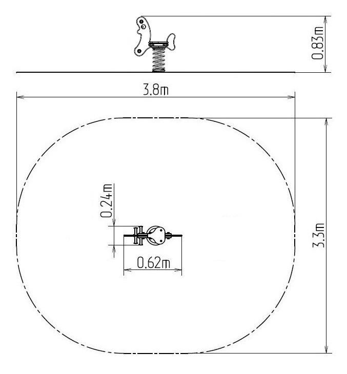 Spring rocker - BANANA. There is no need for a fall zone up to the height of 1 m, a grass surface is enough. More information
