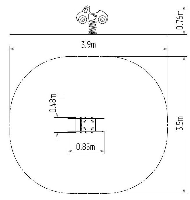 Spring rocker - CAR. There is no need for a fall zone up to the height of 1 m, a grass surface is enough. More information