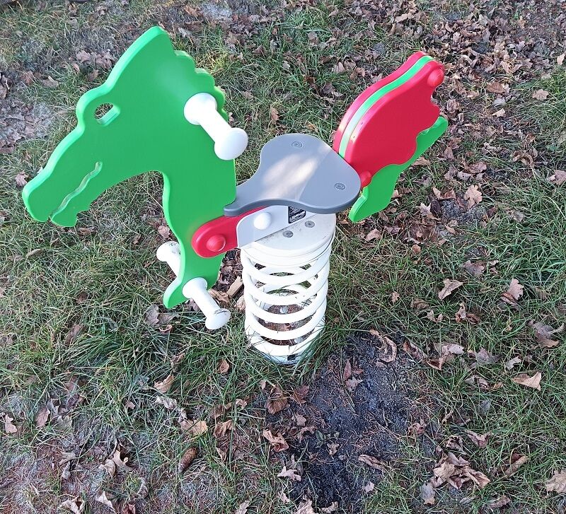 Spring rocker - DRAGON. There is no need for a fall zone up to the height of 1 m, a grass surface is enough. More information