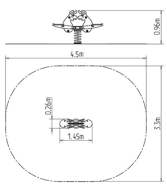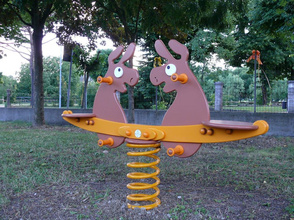 Spring rocker - DUO DONKEY. There is no need for a fall zone up to the height of 1 m, a grass surface is enough. More information