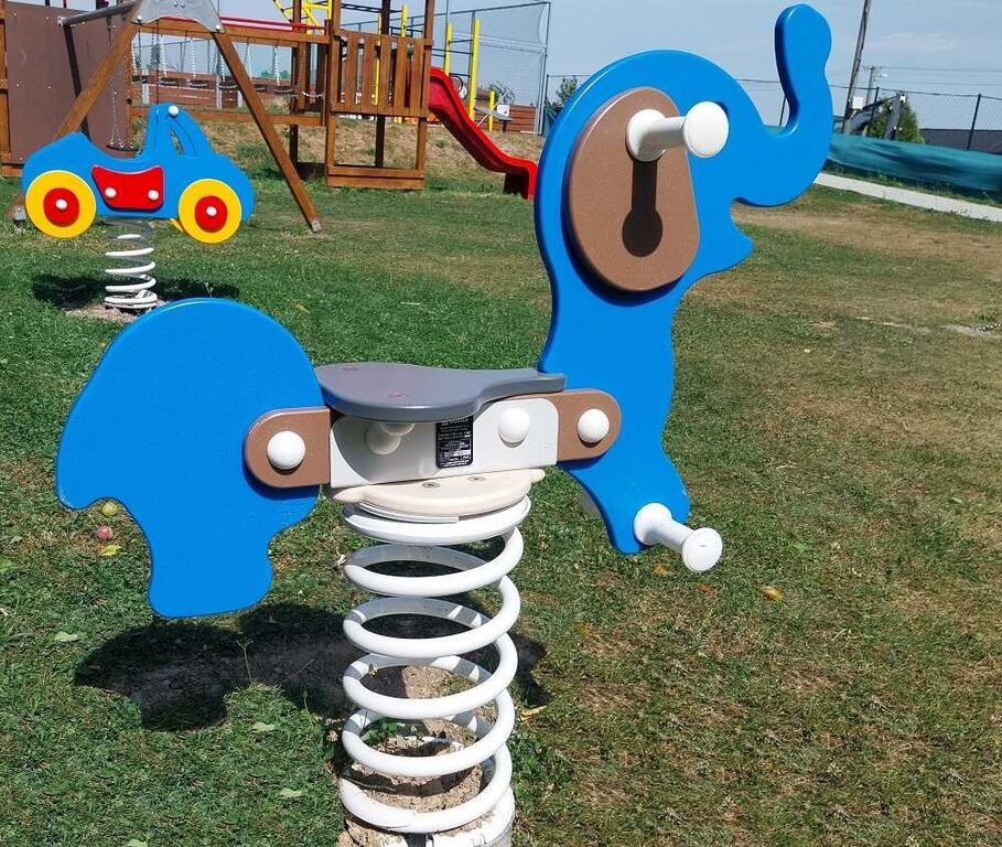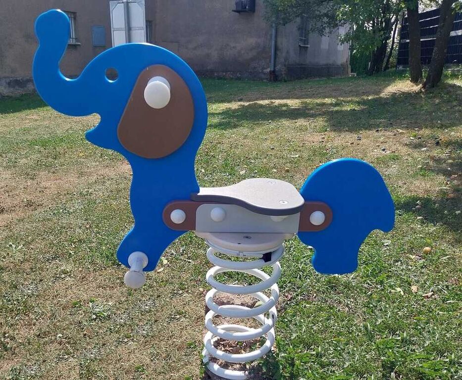 Spring rocker - ELEPHANT. There is no need for a fall zone up to the height of 1 m, a grass surface is enough. More information