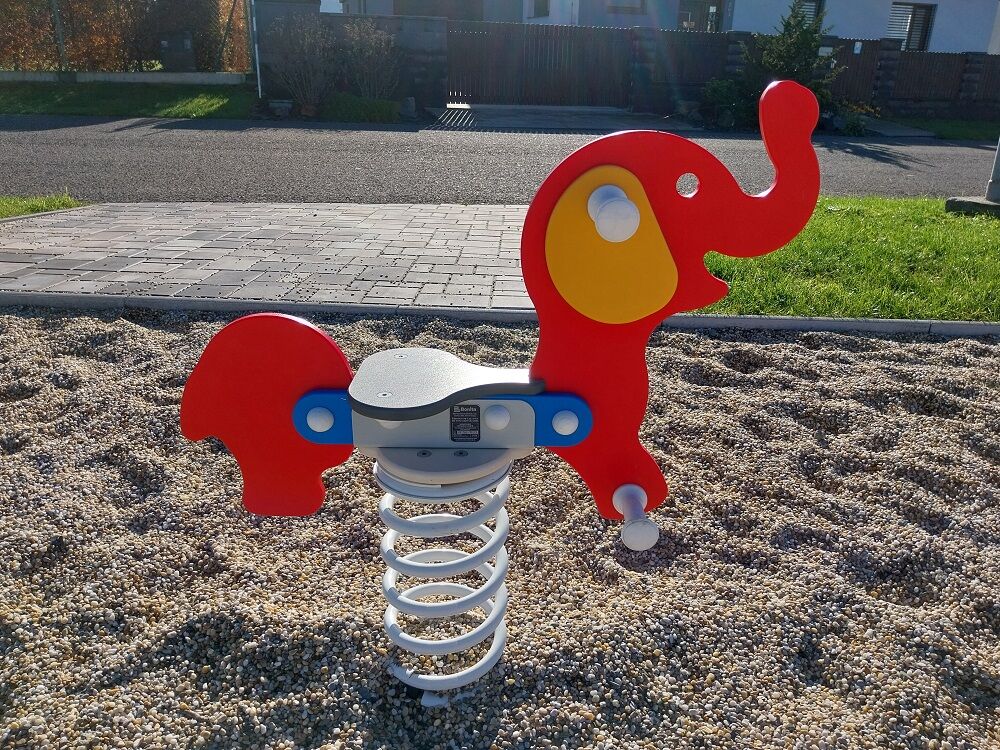 Spring rocker - ELEPHANT. There is no need for a fall zone up to the height of 1 m, a grass surface is enough. More information