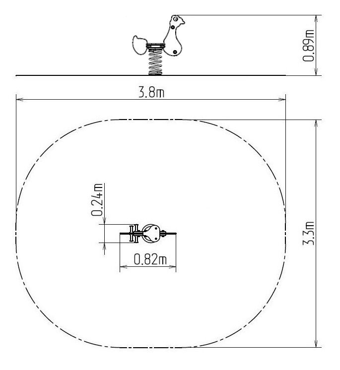 Spring rocker - GOOSE. There is no need for a fall zone up to the height of 1 m, a grass surface is enough. More information