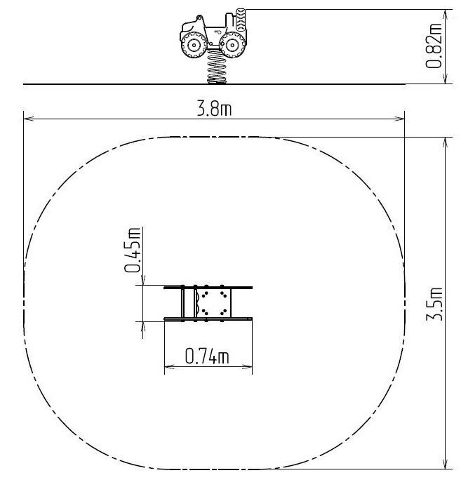 Spring rocker - JEEP. There is no need for a fall zone up to the height of 1 m, a grass surface is enough. More information