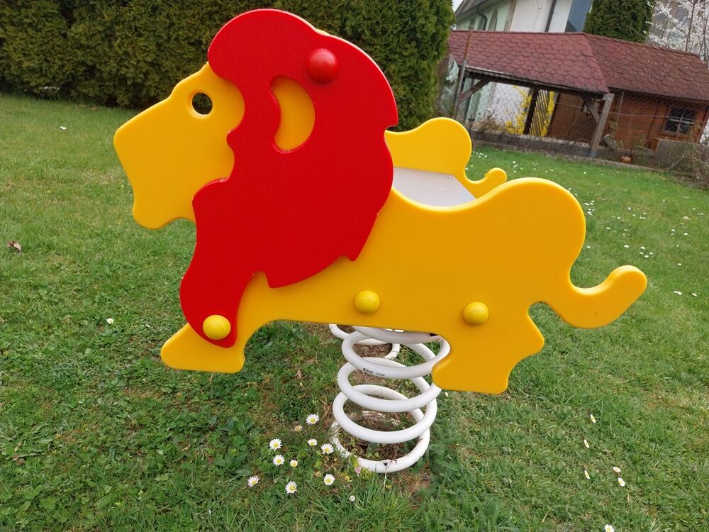 Spring rocker - LION. There is no need for a fall zone up to the height of 1 m, a grass surface is enough. More information