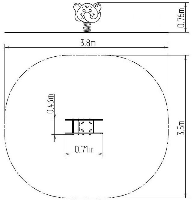 Spring rocker - MAMUT. There is no need for a fall zone up to the height of 1 m, a grass surface is enough. More information