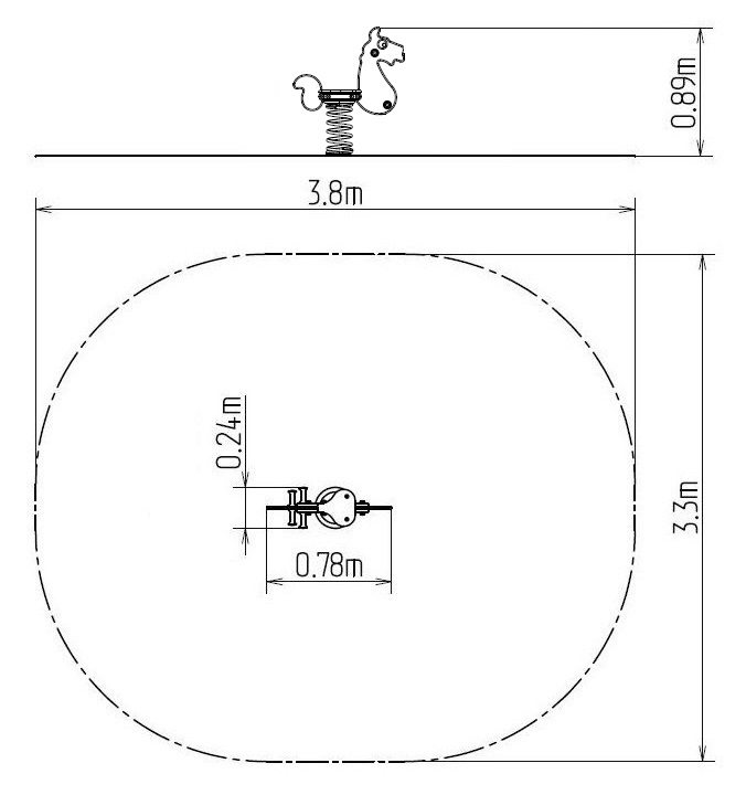Spring rocker - PONY. There is no need for a fall zone up to the height of 1 m, a grass surface is enough. More information