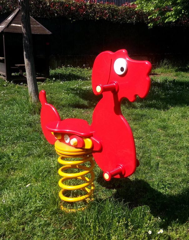 Spring rocker - PUPPY. There is no need for a fall zone up to the height of 1 m, a grass surface is enough. More information
