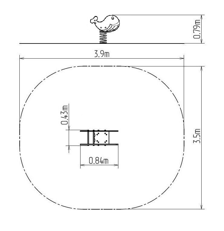 Spring rocker - WHALE. There is no need for a fall zone up to the height of 1 m, a grass surface is enough. More information