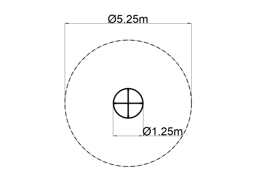 Required area for assembly: 5.25 x 5.25 m