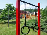 Street workout element WP8014K - there is no need for a fall zone up to the height of 1 m, a grass surface is enough. We offer six color variants of the support structure - red, blue, yellow, green, grey and orange. Handles are black or we offer the option of stainless steel for extra charge - price on request. More information