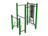 The support structure of the workout set is made of structural steel which is protected against corrosion by zinc coating, resulting in a very prolonged service life of the workout elements or duplex powder coated with coat curing according to RAL to prevent corrosion. All other metallic elements, such as handles, parallel bars etc., are also zinc coated or duplex powder coated with coat curing according to RAL to prevent corrosion or, if required by the customer, the elements can be made in stainless steel.