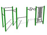 The support structure of the workout set is made of structural steel which is protected against corrosion by zinc coating, resulting in a very prolonged service life of the workout elements or duplex powder coated with coat curing according to RAL to prevent corrosion. All other metallic elements, such as handles, parallel bars etc., are also zinc coated or duplex powder coated with coat curing according to RAL to prevent corrosion or, if required by the customer, the elements can be made in stainless steel.