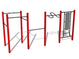 Street workout set WS8012K - there is no need for a fall zone up to the height of 1 m, a grass surface is enough. We offer six color variants of the support structure - red, blue, yellow, green, grey and orange. Handles are black or we offer the option of stainless steel for extra charge - price on request. More information