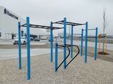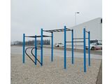 Street workout set WS8015K - there is no need for a fall zone up to the height of 1 m, a grass surface is enough. We offer six color variants of the support structure - red, blue, yellow, green, grey and orange. Handles are black or we offer the option of stainless steel for extra charge - price on request. More information
