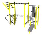 The support structure of the workout set is made of structural steel which is protected against corrosion by zinc coating, resulting in a very prolonged service life of the workout elements or duplex powder coated with coat curing according to RAL to prevent corrosion. All other metallic elements, such as handles, parallel bars etc., are also zinc coated or duplex powder coated with coat curing according to RAL to prevent corrosion or, if required by the customer, the elements can be made in stainless steel.