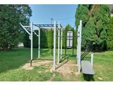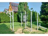 The support structure of the workout set is made of structural steel which is protected against corrosion by zinc coating, resulting in a very prolonged service life of the workout elements or duplex powder coated with coat curing according to RAL to prevent corrosion. All other metallic elements, such as handles, parallel bars etc., are also zinc coated or duplex powder coated with coat curing according to RAL to prevent corrosion or, if required by the customer, the elements can be made in stainless steel.