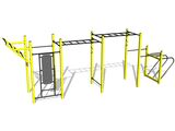 The support structure of the workout set is made of structural steel which is protected against corrosion by zinc coating, resulting in a very prolonged service life of the workout elements or duplex powder coated with coat curing according to RAL to prevent corrosion. All other metallic elements, such as handles, parallel bars etc., are also zinc coated or duplex powder coated with coat curing according to RAL to prevent corrosion or, if required by the customer, the elements can be made in stainless steel.