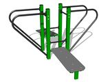 The support structure of the workout set is made of structural steel which is protected against corrosion by zinc coating, resulting in a very prolonged service life of the workout elements or duplex powder coated with coat curing according to RAL to prevent corrosion. All other metallic elements, such as handles, parallel bars etc., are also zinc coated or duplex powder coated with coat curing according to RAL to prevent corrosion or, if required by the customer, the elements can be made in stainless steel.