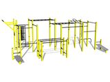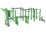 The support structure of the workout set is made of structural steel which is protected against corrosion by zinc coating, resulting in a very prolonged service life of the workout elements or duplex powder coated with coat curing according to RAL to prevent corrosion. All other metallic elements, such as handles, parallel bars etc., are also zinc coated or duplex powder coated with coat curing according to RAL to prevent corrosion or, if required by the customer, the elements can be made in stainless steel.
