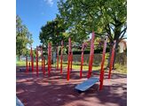 Street workout set WS8030K - there is no need for a fall zone up to the height of 1 m, a grass surface is enough. We offer six color variants of the support structure - red, blue, yellow, green, grey and orange. Handles are black or we offer the option of stainless steel for extra charge - price on request. More information