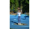 Jumping area - consists of a large number of lamellas designed for this purpose, connected with the frame by stainless steel cables. Cable ends are connected to the frame through springs. Lamellas are of special plastic that is abrasion proof and weather resistant. Thanks to that, children can leave their shoes on when using the trampoline. The jumping area is provided with the anti-slippery surface as well.