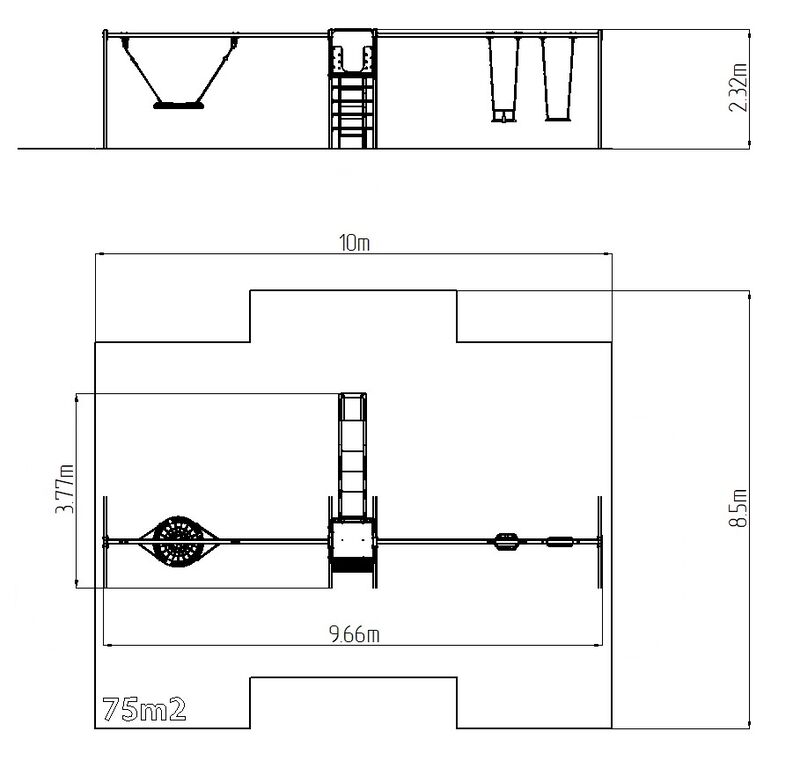 | Fall damping surface: | Rubber or gravel 75 m2 |