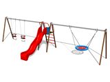 Triple chain swing Nest with slide RH6383K- with a landing and a metal, galvanized boom, drop height 1 m. There are four color variations available - red, green, blue and yellow. More information