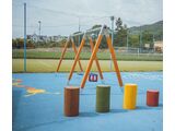 The swing's support structure is made from thick glued wooden supports. This solution ensures maximum protection against cracking, which is common for products made from solid wood. The wooden supports are impregnated and coated with a triple layer of lacquer, which meets the terms and conditions of the EN71/3 Standard (safe for children's toys). The structures are anchored into the ground in steel plates, which are protected against corrosion by hot-dip galvanizing a and fixed in a concrete bed. The anchors are fastened to the play unit with bolts and their structure ensures that they are not in direct contact with the ground.