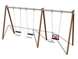 The support structure of the swing is made from structural steel, which is zinc coated or duplex powder coated with coat curing according to RAL to prevent corrosion and is fixed in a concrete bed. The Baby seat is made of rubber and is reinforced with an aluminum insert. The Normal seat is made of aluminum, covered with a soft and comfortable rubber. The chains are stainless steel, resulting in a very prolonged service life of the product. All fastening material is galvanized or stainless steel.