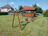 Triple chain swing RH6322K - metal (f.h. 1 m) - there is no need for a fall zone up to the height of 1 m, a grass surface is enough. We offer three color variants of the support structure - red, blue and brown. More information
