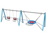 The support structure of the swing is made from structural steel, which is zinc coated or duplex powder coated with coat curing according to RAL to prevent corrosion and is fixed in a concrete bed.