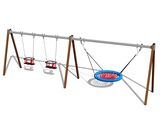 The swing is hung on a metal girder using galvanized chains. The "Bird's Nest" seat is made from polypropylene rope with heavy duty fibres. The hanging ropes are made using HERKULES material (16 mm thick ropes made from polypropylene with a steel internal core). The Baby seat baby is made of rubber and is reinforced with an aluminum insert. All fastening material is galvanized or stainless steel.