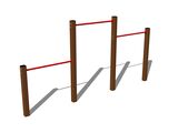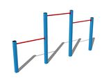 The support structure of the triple fitness rack is made of structural steel which is protected against corrosion by zinc coating, resulting in a very prolonged service life of the workout elements or duplex powder coated with coat curing according to RAL to prevent corrosion and is fixed in a concrete bed. All other metallic elements are also zinc coated or duplex powder coated with coat curing according to RAL to prevent corrosion. The triple fitness rack is constructed with durability and long life in mind. All fastening material is galvanized or stainless steel.