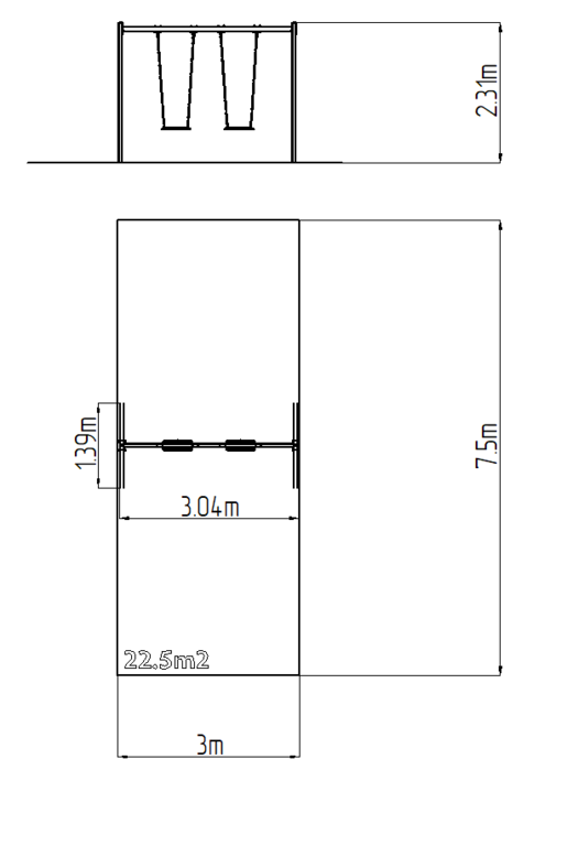 | Fall damping surface: | Rubber or gravel 22.5 m2 |