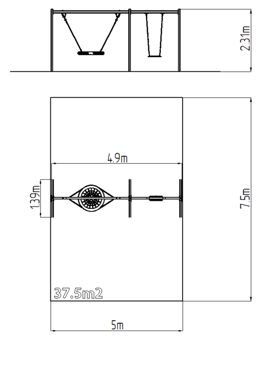 | Fall damping surface: | Rubber or gravel 37.5 m2 |